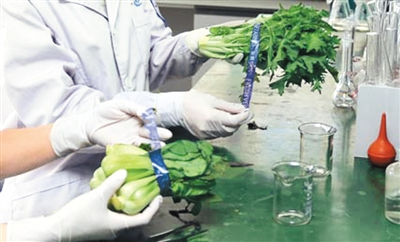 2016年7月,针对市民的顾虑,深圳市质检院配合深圳市食药局在当地6家超市随机抽检了11个胶带捆绑蔬菜样本,对胶带直接接触部分的蔬菜甲醛残留量和甲醛迁移量等指标进行检测。