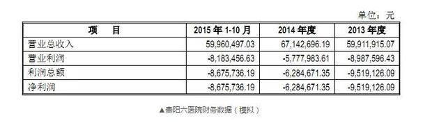 贵阳六医院的业绩也并无太大亮点。根据朗玛信息2015年增资该医院的公告,2013年、2014年、2015年(前10个月),贵阳六医院的净利润(模拟计算)分别为-951.9万元、-628.5万元、-867.6万元。