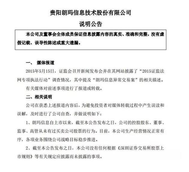 上市后,凭借各种眼花缭乱的概念以及2015年创业板大涨的势头,朗玛信息股价一度高达288元,超越贵州茅台成为第一高价股。2014年5月15日,证监会新闻发言人邓舸称,已对朗玛信息异常交易案等案件展开全面调查。不过目前并未其调查结果的最终消息。
