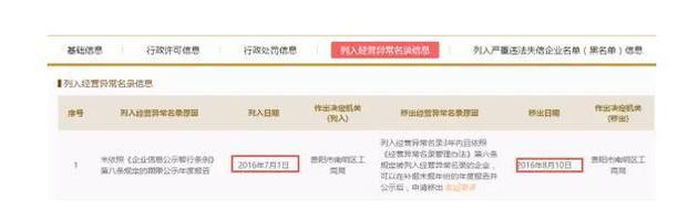 不过,每日经济新闻(微信号:nbdnews)也注意到,因未按时披露年报,贵阳六医院曾被当地工商部门列入经营异常名单中,列入日期为2016年7月1日,随后于当年8月10日移出。