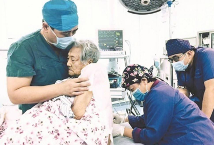 去年12月,哈尔滨一名102岁老人因骨折需要手术,因为老人总是歪着,坐不住,腿也疼,医生就直接“抱着”老人实施麻醉。当时,医生对老人说:“别害怕有我呢,你放心吧。”