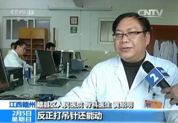 事发当天,骨科的另外一名负责人因患重病无法工作,因而大部分手术都要黄医生来做。连续两天做了8台手术后,黄医生发烧了。但是,科室的病历归档工作以及后面的手术也必须由他完成,因此才有了一边打吊针一边坐诊的画面。