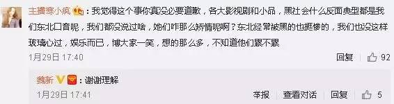 1月28日,小品编剧魏新为此在微博发文道歉:“作为这个小品的编剧,我向各位网友道歉,小品中的骗子说河南话和郭冬临老师无关,是我用家乡话配的音,我是山东人,老家方言接近河南,别的方言也不会说,所以引起了大家的误会,实在不好意思,向大家道歉!”