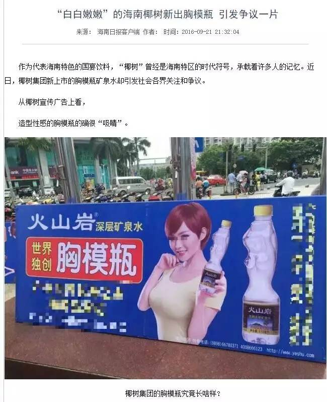 ▲椰树集团推出的胸模瓶也曾引发争议(图片来源:南海网)