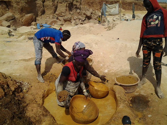 由于几内亚蕴藏着交丰富的金矿资源,吸引了当地老百姓采用手工采金、土法淘金的热潮。在有些金矿密集的村落,甚至出现全村男女老少齐上阵的现象。