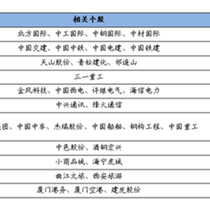 预计国际工程承包、大基建、优势产能及产业输出、跨境电商等多个领域受益;区域主线,从预期差的角度关注陕西(如西安)、福建(如厦门)