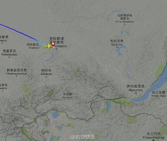 2月15日,东方航空MU552次伦敦飞上海航班疑因“在空中右发推力故障”,紧急备降在俄罗斯克拉斯诺亚尔斯克机场。网友供图