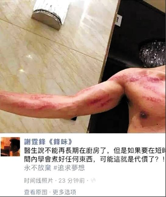 近日,谢霆锋晒出了他手臂、胸膛满布红色刮痕的刮痧照片,身体状况令人担忧。有关于他的病情,其经纪人透露是手筋膜发炎。医生建议他短期内不要再进厨房,经纪人说:“他一天吃一、二排止痛药都不行。”