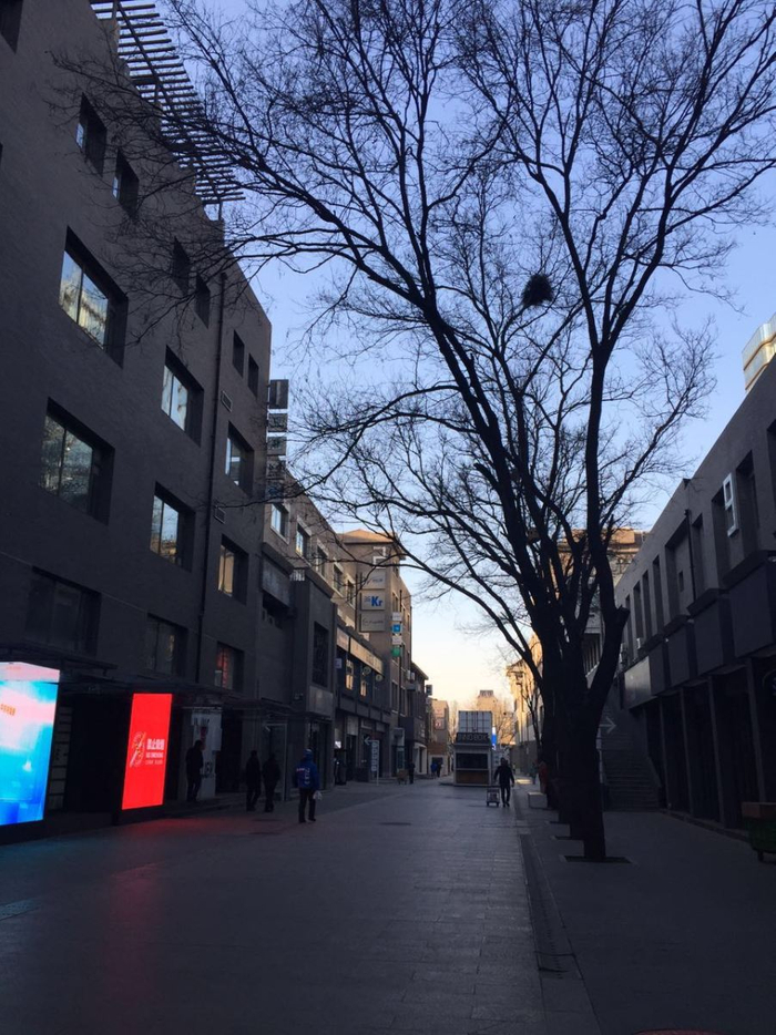 海淀黄庄,一个小女孩儿一蹦一跳地走向路边的卖艺歌手,她刚从她父亲的衣兜里费劲地拿出了零钱。她和父亲的对话有点听不清楚——歌声似乎有点过于嘈杂。他的背后是一棵银杏树,光秃秃的树干刚刚送走了它最后一片树叶,中关村的寒风似乎没有人情味:卖艺者紧了紧自己的领口,怔怔地看着稀稀拉拉的人们,思索着当年水泄不通的熙攘人群。