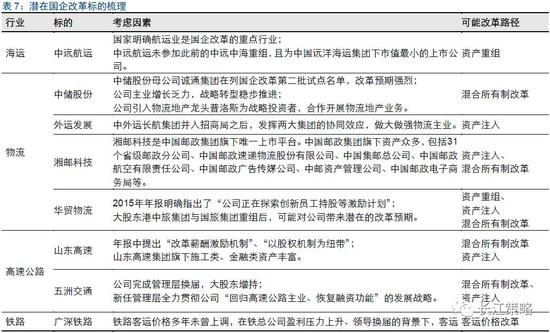 我们梳理出交运各板块国企改革潜在标的。