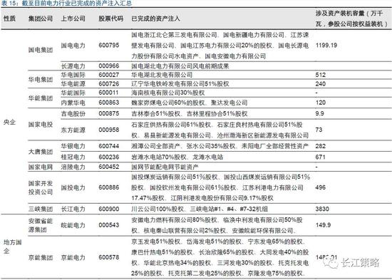 根据各大央企与地方国企在上市或股权分置改革时期的承诺,多数国企在“十一五”到“十二五”期间已经部分完成或完成了集团发电资产证券化进程,基本上均通过资产注入的方式实现。其中,五大发电集团均部分完成了早期的资产注入承诺,然而由于五大集团公司庞大的发电体系以及随后的发电资产扩张,尚有客观的资产证券化空间。 地方性国企中,多数已经基本完成了资产证券化,实现了发电业务整体上市。然而,随着各公司发电业务的持续扩张,未来仍具备资产注入的余地。