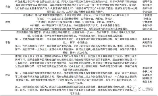 建筑:混改落地年,重点关注试点央企及上海国企。