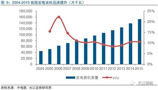 此轮改革解决了缺电的问题,我国发电装机在这20年间快速提升,2004年装机仅为4.4亿千瓦,而15年则已高达15亿千瓦,装机增长达约3.5倍,年化增长率约12%。