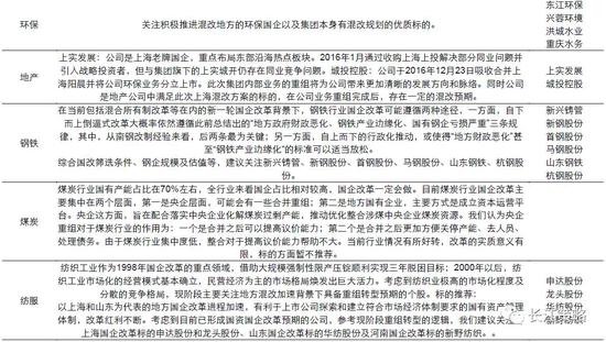 我们认为,2017年国改重点看混改,行业混改预期是否强烈,取决于外生动力和内生动力的共同驱动作用。外生动力主要来源于政策,我们预期,电力、铁路、民航等在2016年12月闭幕的中央经济工作会议上得到重点强调的关键性行业将在2017年取得混改的实质性进展。内生动力则来源于行业内国企自身寻求股权多元化,以提高经营效率和盈利能力的意愿。我们认为符合下列四点的行业混改的内生动力较强:
