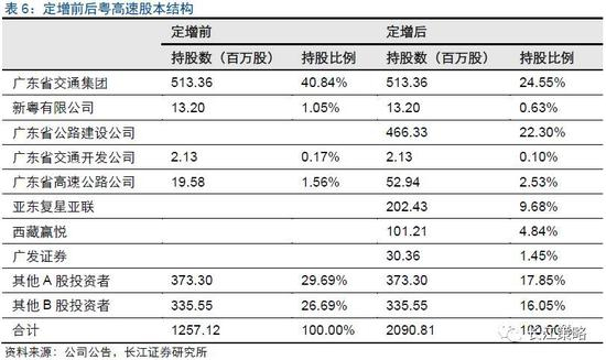 国资控股比例提升。此前,粤高速虽然长期以来由国资委实际控制,广东省交通集团是公司的控股股东,但控股比例在资产重组前只有43.61%,处于相对控股地位。此次,民营资本大比例参股后,国有资本的直接和间接持股比例实际上未降反升。广东省交通集团通过新粤公司、省高速公司、建设公司以及投资公司旗下的开发公司,合计持股粤高速50.12%,进入绝对控股地位。