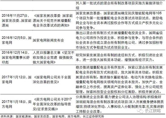 2015年新电改伊始,电改最高指导文件9号文即确定鼓励以混合所有制方式发展配电业务,配电和混合所有制在政策文件中首次关联在一起。进入2016年末,随着9月发改委会议开展国有企业混合所有制改革工作专题会议,明确在电力领域开展混合所有制改革之后,混改在电力行业内迅速升温,国家发改委、国家能源局、国家电网、南方电网在多次会议及政策中反复提及,以混合所有制开展增量配电业务。两大电网公司亦于2017年开年的1号文件表示推进混合所有制发展配电,毫无疑问,电网企业与社会资本通过股权合作等方式成立混合所有制公司参与增量配电业务,是电网混改的核心主线。