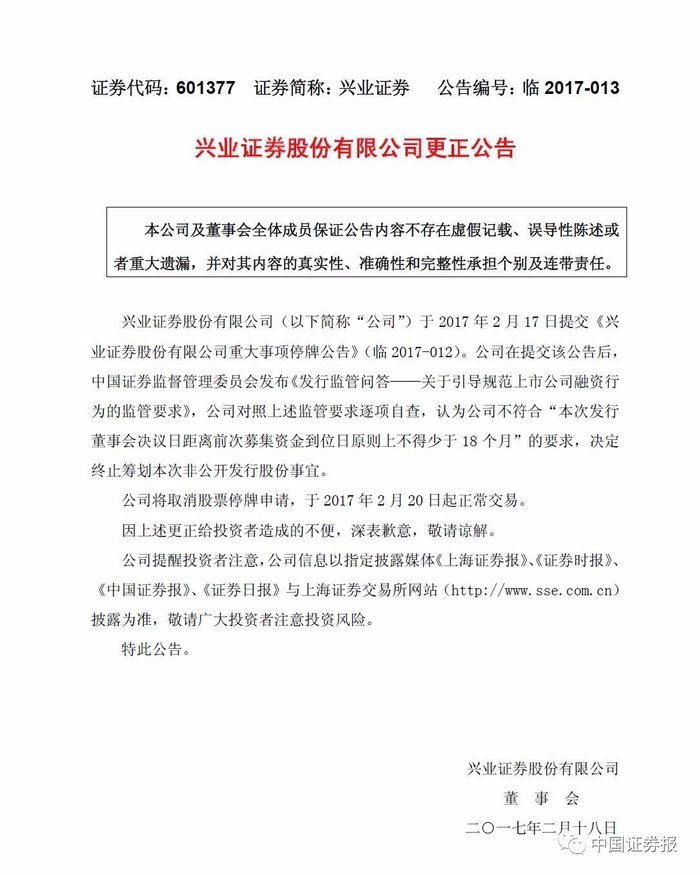 影响立竿见影,兴业证券定增计划刚公告就取消!