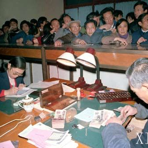 实际上,那时候的中国股市还处在起步的状态。在上海开设的全国第一个股票营业柜台上,飞乐音响和延中实业是仅有的两只交易股票。没有电脑,没有行情显示屏,成交价由客户口头协商,然后写在黑板上。交割、登记卡号、盖章、过户,所有的程序都是手工完成,每天的平均交易量只有数十笔。