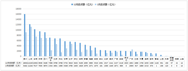 地域分布方面,按入库项目数排序,贵州、山东(含青岛)、新疆、四川、内蒙古位居前五名,分别为1788个、1087个、852个、848个、828个,合计占入库项目总数的48.0%。按入库项目投资额排序,贵州、山东(含青岛)、云南、河南、四川位居前五名,分别为16034亿元、12229亿元、10302亿元、9538亿元、9180亿元,合计占入库项目总投资的42.4%。