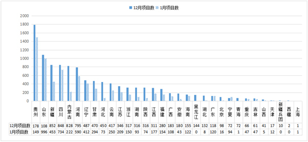 焦小平表示,贵州、山东(含青岛)、新疆、四川、内蒙古位居入库项目数前五名,合计占全国入库项目的48.0%。其中,除山东外,都为西部省份。