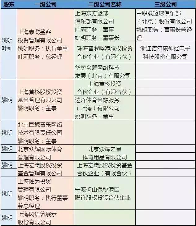 姚明投资的部分公司