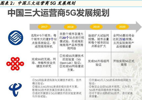 根据工信部的规划,中国移动、中兴通信等将在下半年开展6GHz以下频段的外场试验。中国电信也明确,到2018年实施6GHz以下频段的5G规模技术试验和试商用试验。
