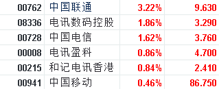 受此消息刺激,港股市场通信服务股开始躁动,中国联通(00762)涨幅最高,最终以3.22%的涨幅收盘,而其A股则涨了8.09%。