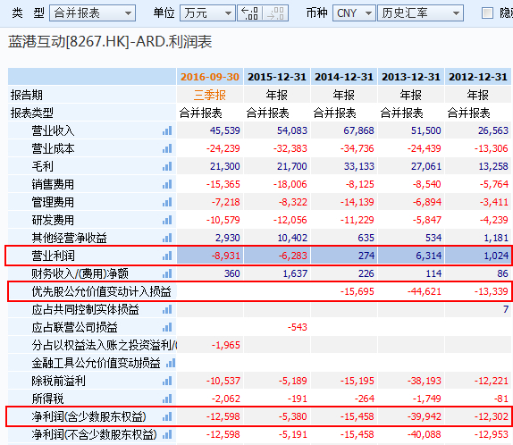 蓝港互动财务数据显示,公司自2012年起一直亏损,在行业发展最好的时期,仍无扭亏迹象,2016年的亏损更是大幅度增加。
