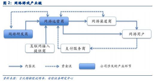 其产业链,是由研发商、运营商、渠道商、支付服务商、互联网接入提供商、用户等环节构成。内容由研发商流向用户;资金由用户流向研发商。