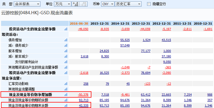 同时,公司2016年上半年,现金减少5亿多,减幅达54.35%,余额仅剩4.2亿。
