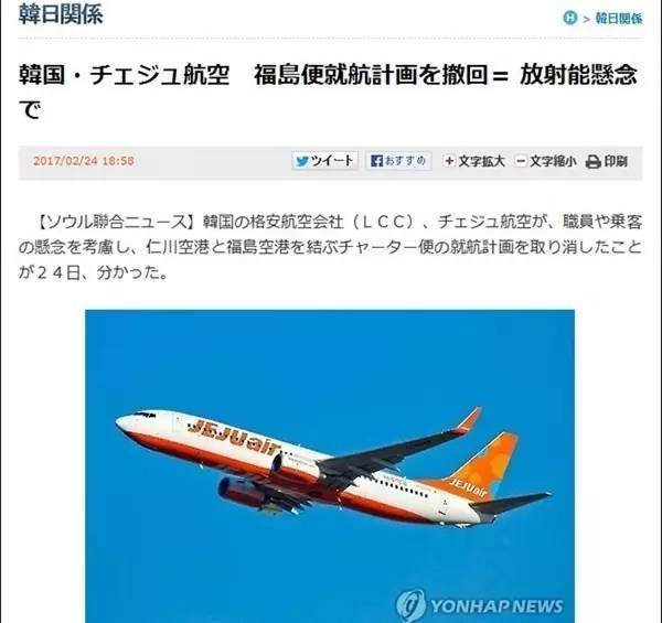 2月24日,韩国济州航空还因辐射问题取消了仁川到福岛的航线。据韩联社网站报道,韩国航空公司济州航空出于乘客和职工的安全考虑,取消了韩国仁川到日本福岛的航线。