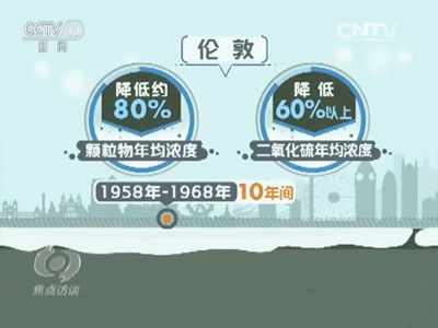 从1958年到1968年的10年间,伦敦颗粒物年均浓度降低了约80%,二氧化硫降低了60%以上。