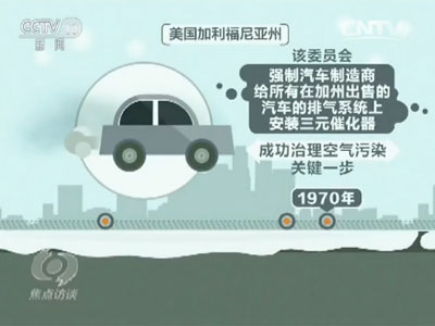 1967年,加利福尼亚州成立了专门负责为空气污染源制定标准和法规的“加州空气资源委员会”。1970年,该委员会强制汽车制造商给所有在加州出售的汽车的排气系统上安装三元催化器,这被看作是成功治理空气污染的关键一步,目前加州汽车尾气污染物只有30多年前的1%。