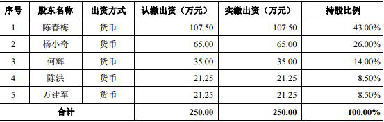 2014年10月,富瀚股份增资至3,333.33万元,此次增资后,杰智控股持股29.89%、陈春梅持股17.96%、龚传军持股3.37%。