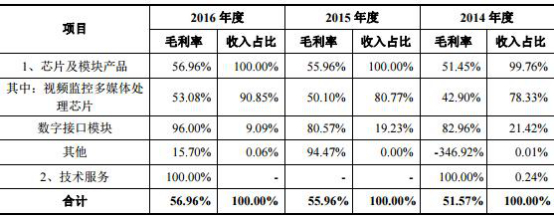 富瀚微毛利率数据(截图自富瀚微招股书)
