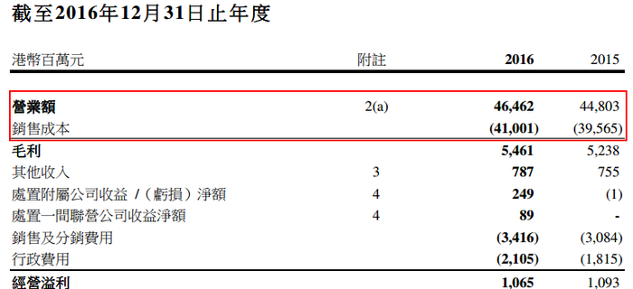2016年,大昌行营业额为464.62亿港元,同比增长3.7%;净利润5.11亿元,同比下滑10.4%;基本每股收益27.89港仙;拟每股派现3.69港仙。其中,2016财年的收入增长主要了来自该公司自2016年7月起计入利丰亚洲业务的营业额。