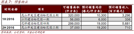 公司在 2010~2012 年间在江苏昆山和江阴储备了 118 万平方米建筑面积的土地,目前已建成住宅或商铺销售。而这次物业收入大增15亿,主要原因就是2016年上半年销售住宅项目昆山开发区建滔裕花园三期,下半年还会有住宅销售收入陆续入账,判断还将贡献 15~20亿收入。