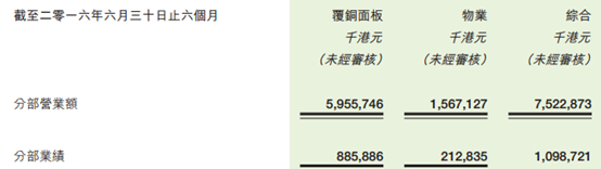据财报业务分析内容,其覆铜面板贡献营业额同比在下降的基础上,却因为毛利率的提高(从15年的17%提高到16年上半年的19%)贡献了更多的业绩。而相比2015年,物业部分的收入和利润增长惊人。