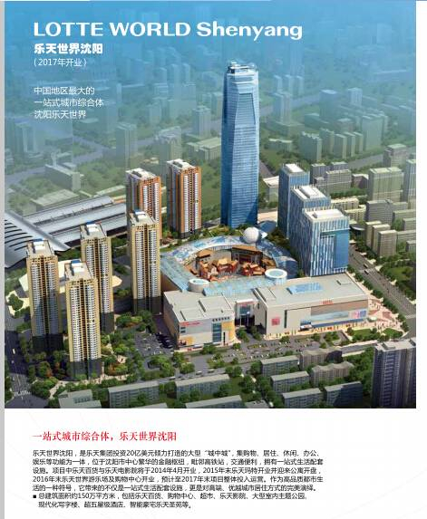 投资20亿美元打造的大型“城中城”,包括乐天百货、购物中心、超市、乐天影院、大型室内主题公园、现代化写字楼、超五星级酒店、智能豪宅乐天圣苑等。