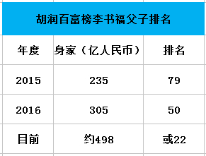 以498亿人民币的身家,李书福父子可登陆《2016胡润百富榜》第22名,仅次于21名的世茂房地产(00813)许荣茂家族(500亿人民币)。