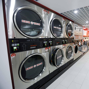 2、记者多处走访发现,自助洗衣店大多开设在大型超市周围或租用沿街店铺,装修以红色为主,面积在80至120平方米不等,每家店都配备近十台滚筒洗衣机和专业烘干机。