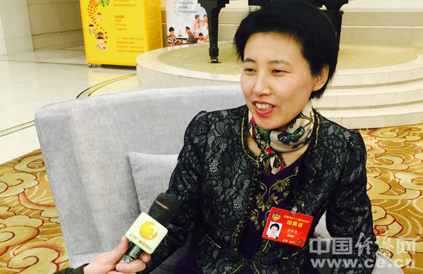 岳泽慧委员接受记者采访。记者 梅淑娥 摄影