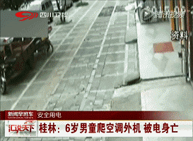 7电器设施要当心孩子的好奇心很强,对生活中哪怕常见的一些东西也会很感兴趣。一段监控画面显示,一个小男孩欢快地冲到一台空调机箱处,开始攀爬,他的妈妈跟在后面,却并没有制止,而是继续往前走。这时小男孩突然左腿滑了一下,身体轻微震了震,接着整个人一动不动趴在机箱上,虽然被路人发现,可惜回天乏术触电身亡。