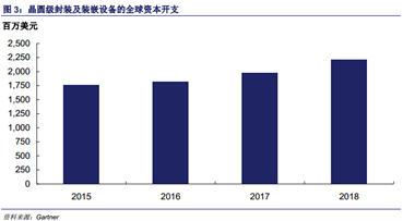 据美国著名咨询公司Gartner预计, 2017 年和 2018 年全球半导体资本支出将恢复增长。
