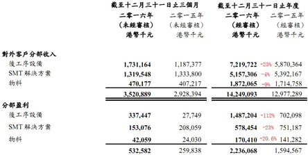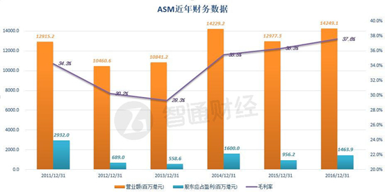 不过,这种冷门公司也往往会以超额收益来犒赏那些“知己者”。3月3日,ASMPT公布了其2016财年业绩,收入为142.5亿港元,同比增加9.8%。除税后盈利为14.4亿港元,同比增加50.9%,相当亮眼。