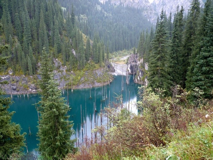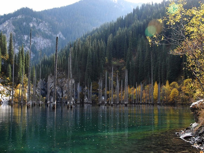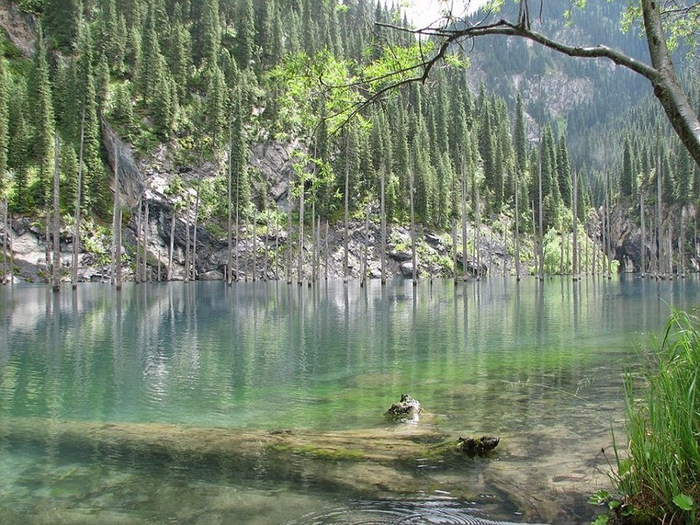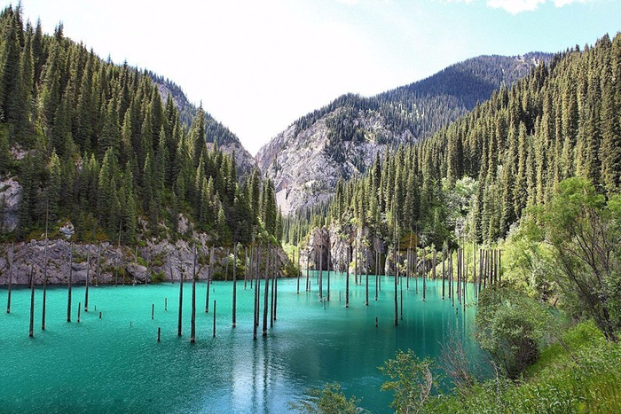 据英国《每日邮报》3月8日报道,近日,网上一组照片吸引了人们的眼球。在哈萨克斯坦,距阿拉木图市约130公里的天山上,有一片名为Kaindy的神奇湖泊。它以清澈见底的湖水、水上壮丽的云杉树干以及水下清晰可见的瑰丽森林而闻名于世。