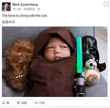 ▲扎克伯格曾将才出生17天的女儿扮成星际大战的绝地武士