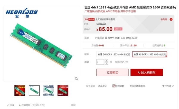 对于懂行的玩家来说,一眼就可以看出,85元包邮的价格一定有猫腻,眼尖的用户从淘宝的购买页面就可以看出猫腻,今天笔者就一起带玩家来看看这个85元包邮的4G内存条是什么鬼?