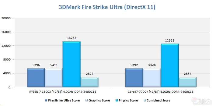 3DMark Fire Strike Ultra:看物理测试,Ryzen还有所领先,其他项目基本差不多。