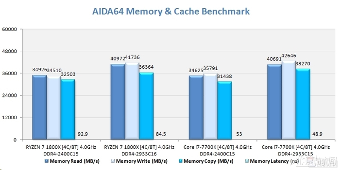 Adobe缓存与内存:Ryzen读取和拷贝性能稍有胜出,写入略慢,但是延迟高了几乎一倍,这个问题亟待解决。